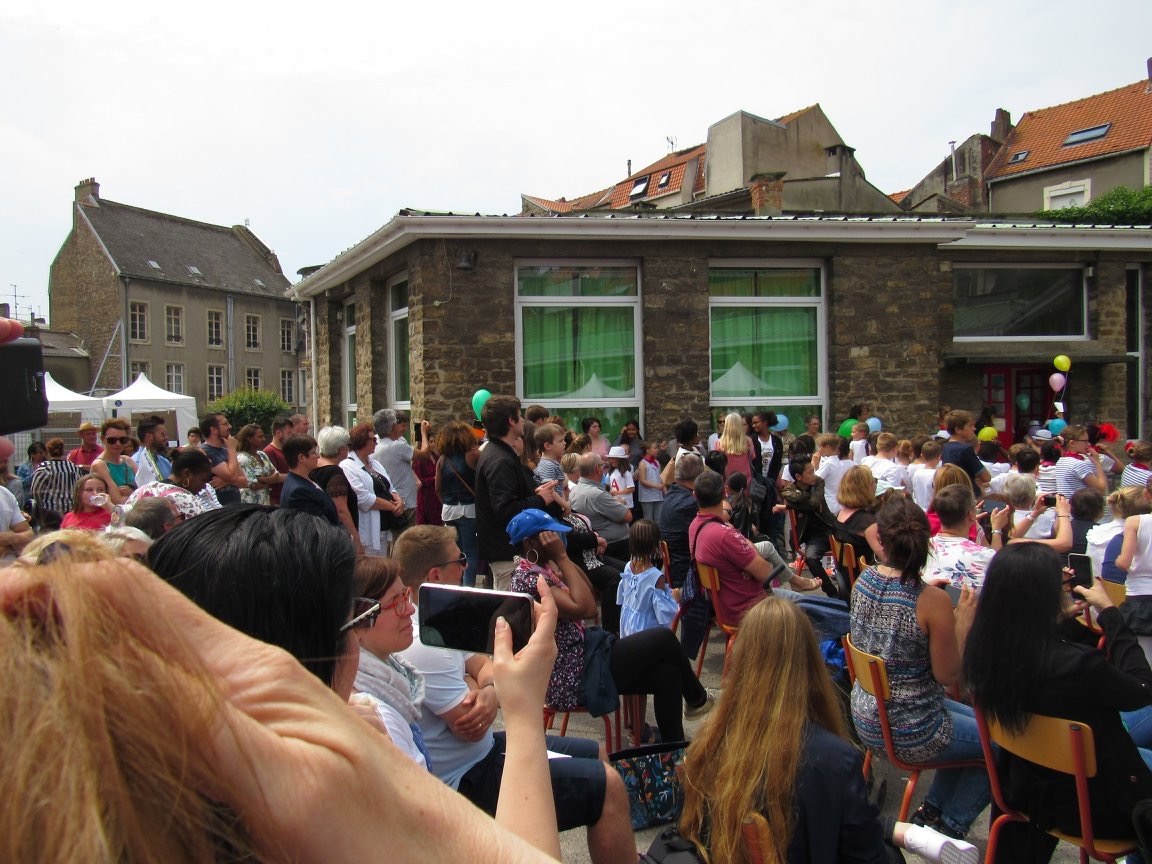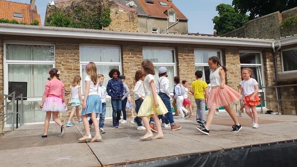 Fête, danses, kermesse, stands de jeux et grillades dans la cour de l'école