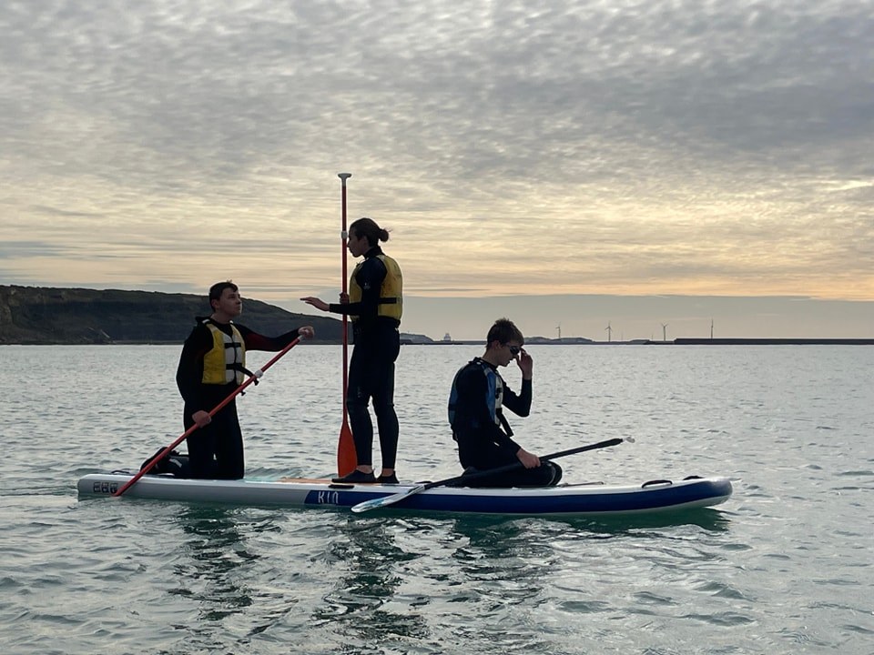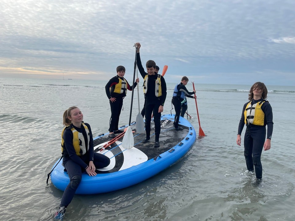 Les 4e/3e d’option aquatique ont vécu une épreuve de cohésion et de communication pour leur dernière séance en mer ce lundi en pratiquant le paddle géant avec le CN Wimereux. Nos jeunes se sont bien débrouillés malgré les conditions qui commencent à devenir fraîches.