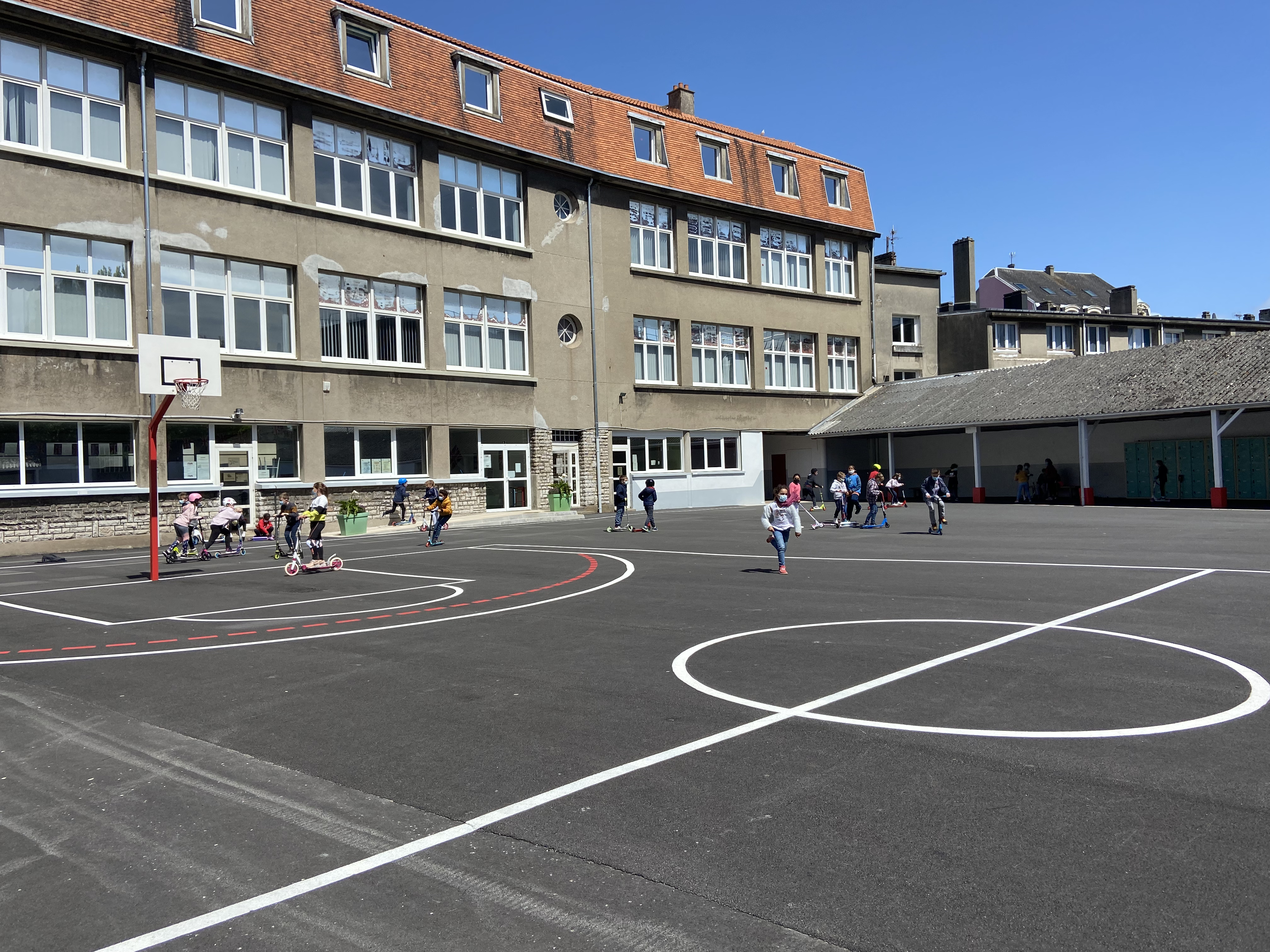 TROTTINETTES DES ECOLIERS DANS LA COUR DU COLLEGE