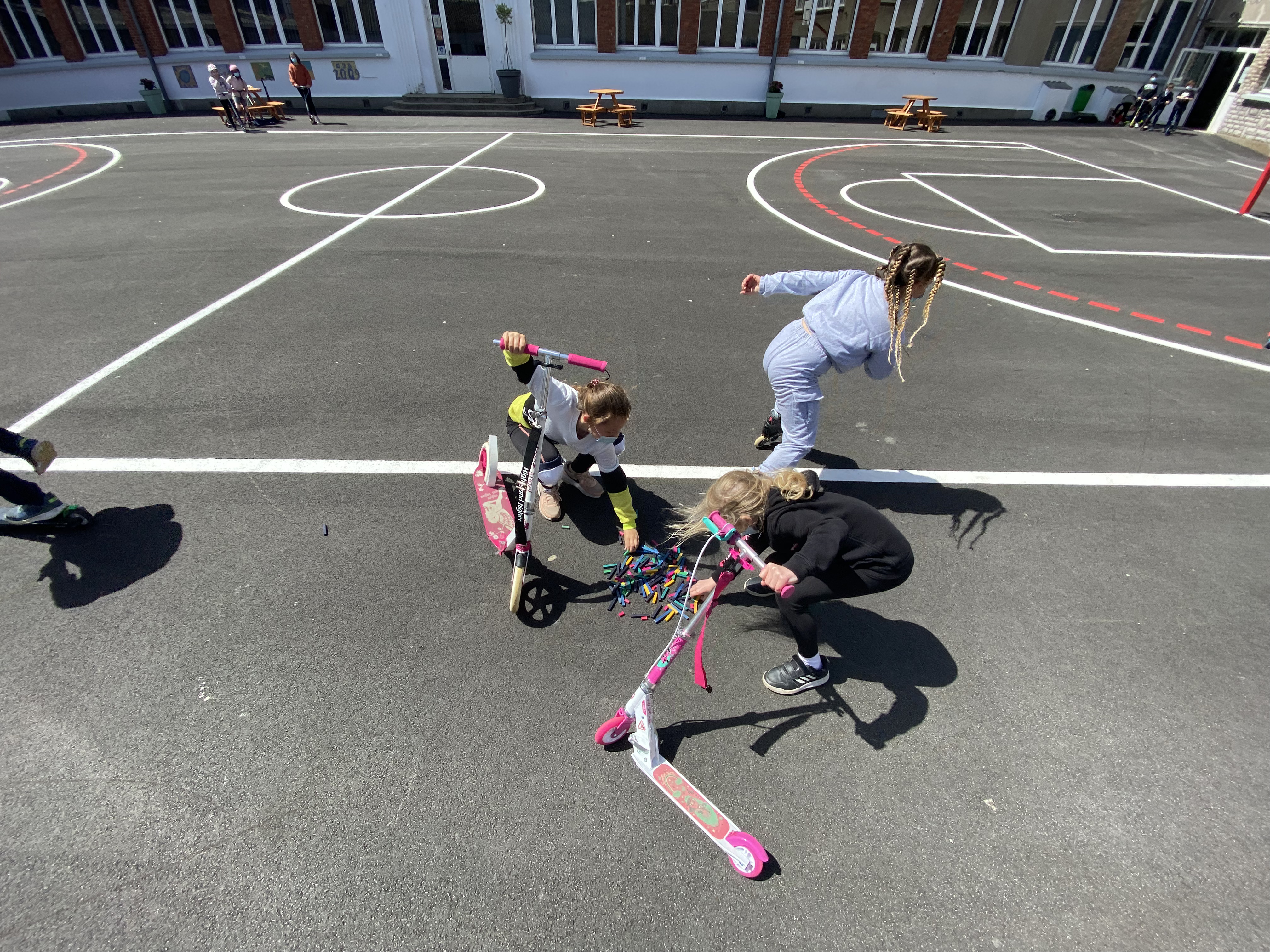 TROTTINETTES DES ECOLIERS DANS LA COUR DU COLLEGE