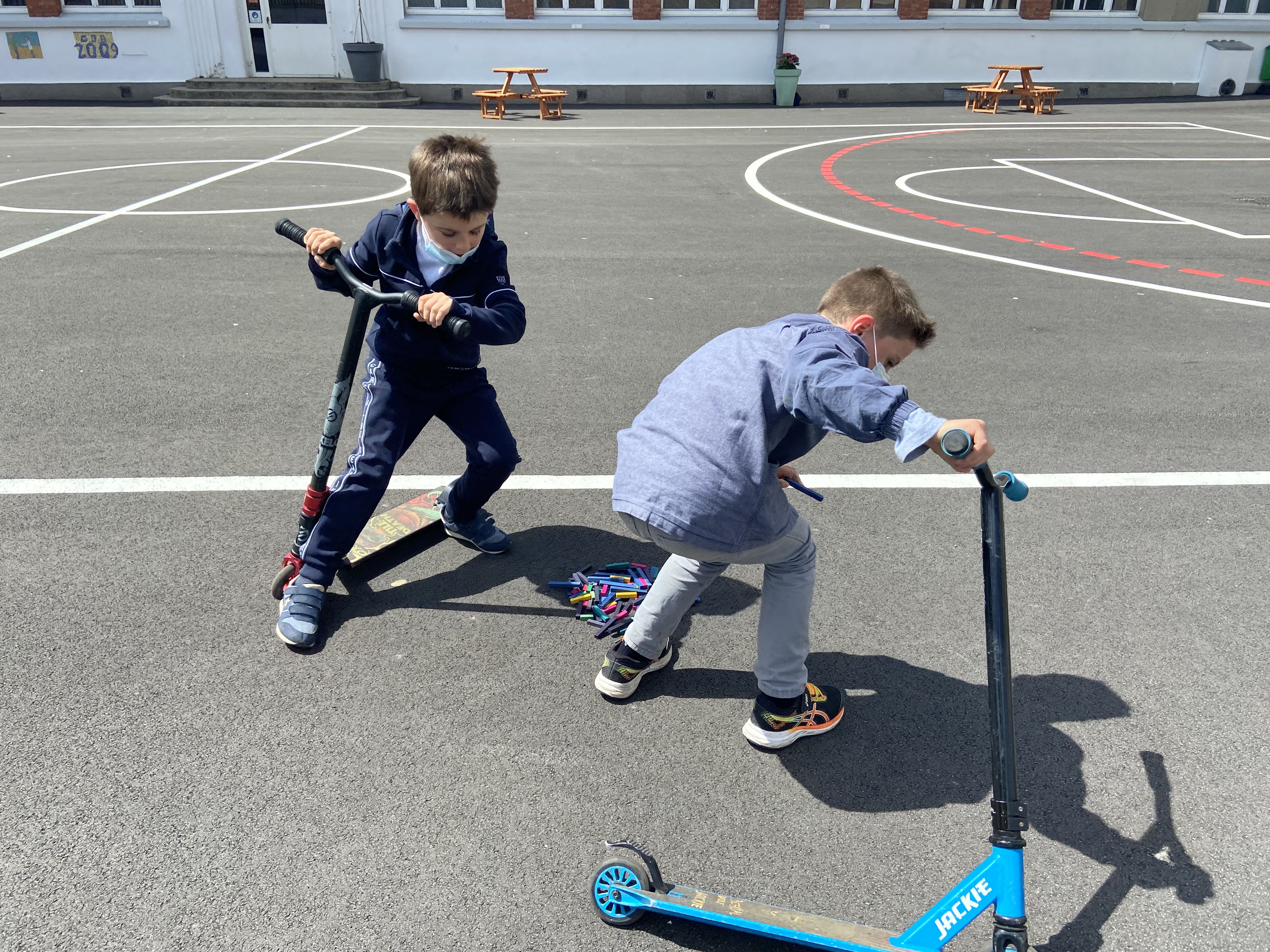 TROTTINETTES DES ECOLIERS DANS LA COUR DU COLLEGE